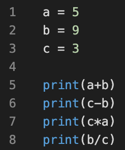 기본적인 +, -, *, / 를 사용할 수 있다.