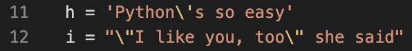 문자열 안에서 작은따옴표(') 또는 큰따옴표(")를 사용하려면 아래와 같이 해야한다.