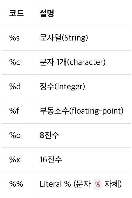 여기서 %s는 문자열 이외에도 다른 형태의 변수도 사용할 수 있다.