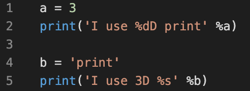 포매팅이란 변수에 있는 값을 문자열로 사용할 때 사용하는 방법이다.