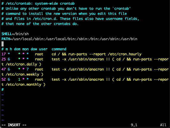 sudo vi /etc/crontab