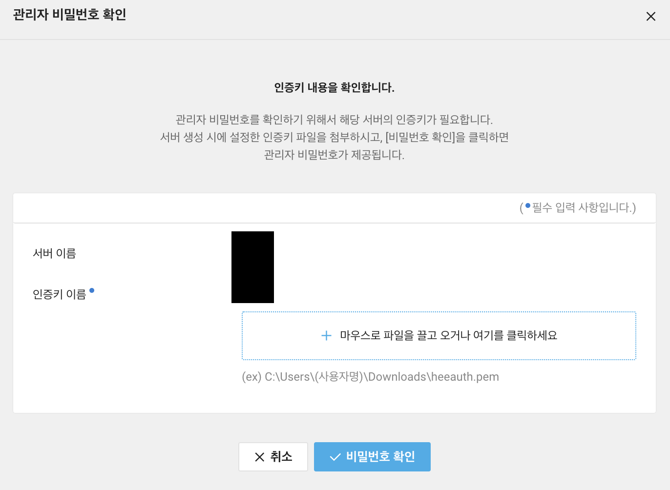 처음 서버 생성 시에 만들었던 인증키로 관리자 비밀번호를 확인하자