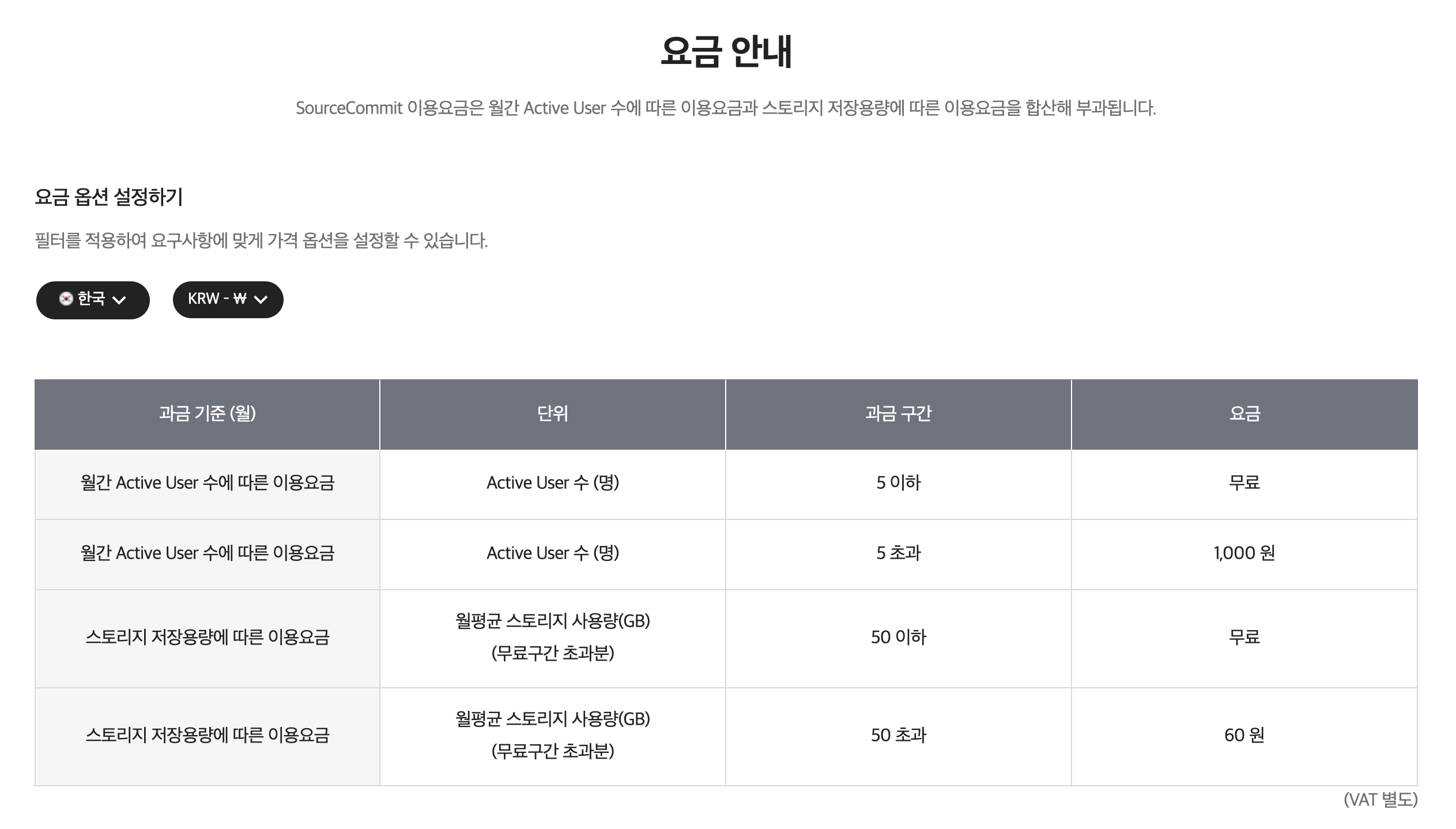 5명 이하 / 50GB 이하면 무료로 사용할 수 있다.